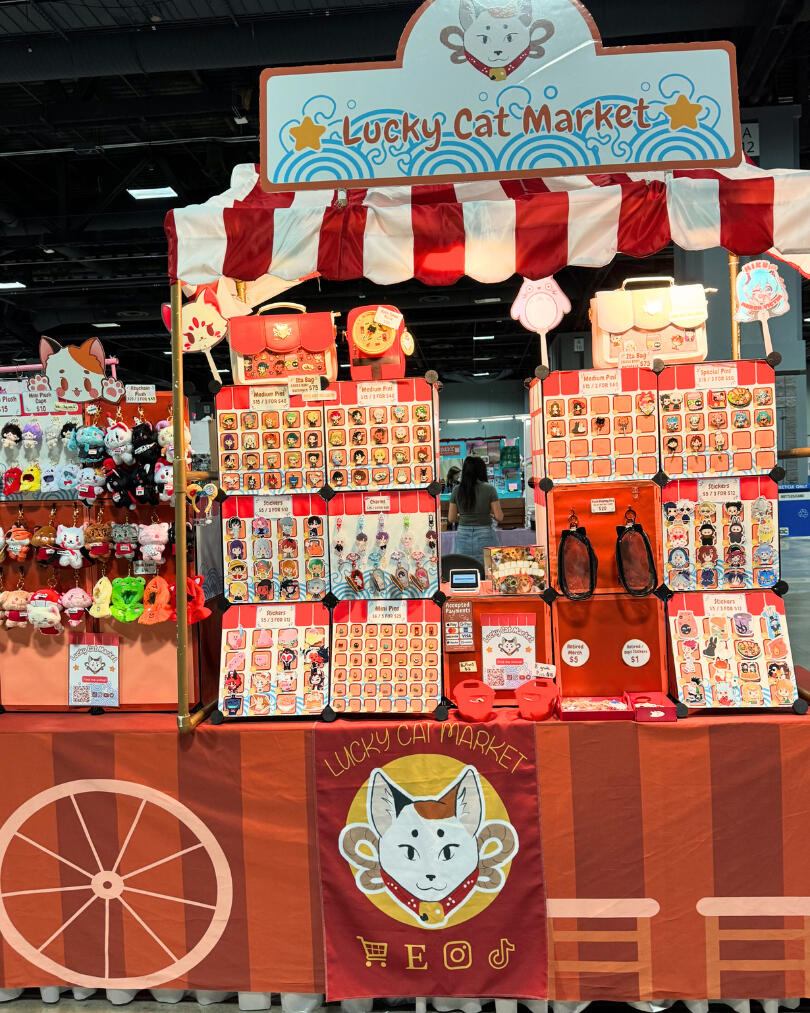 Lucky Cat Market is a woman-owned small business operating since 2020. We are devoted to showcasing a wide variety of products, catering to anime fandoms as well as a host of fully original designs! We have everything from pins to ita bags to plushies. We also focus on creating a unique and enjoyable experience with our booth display!